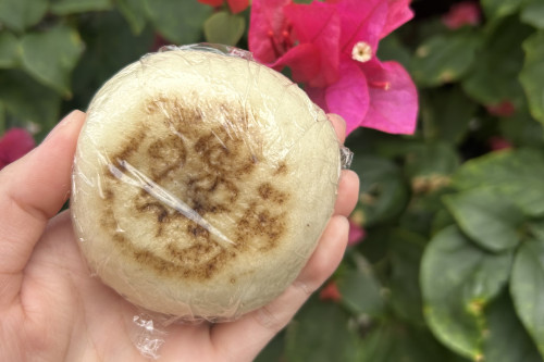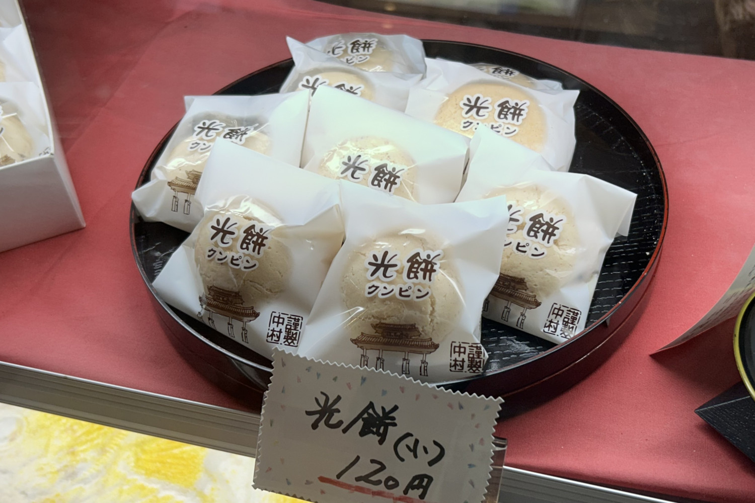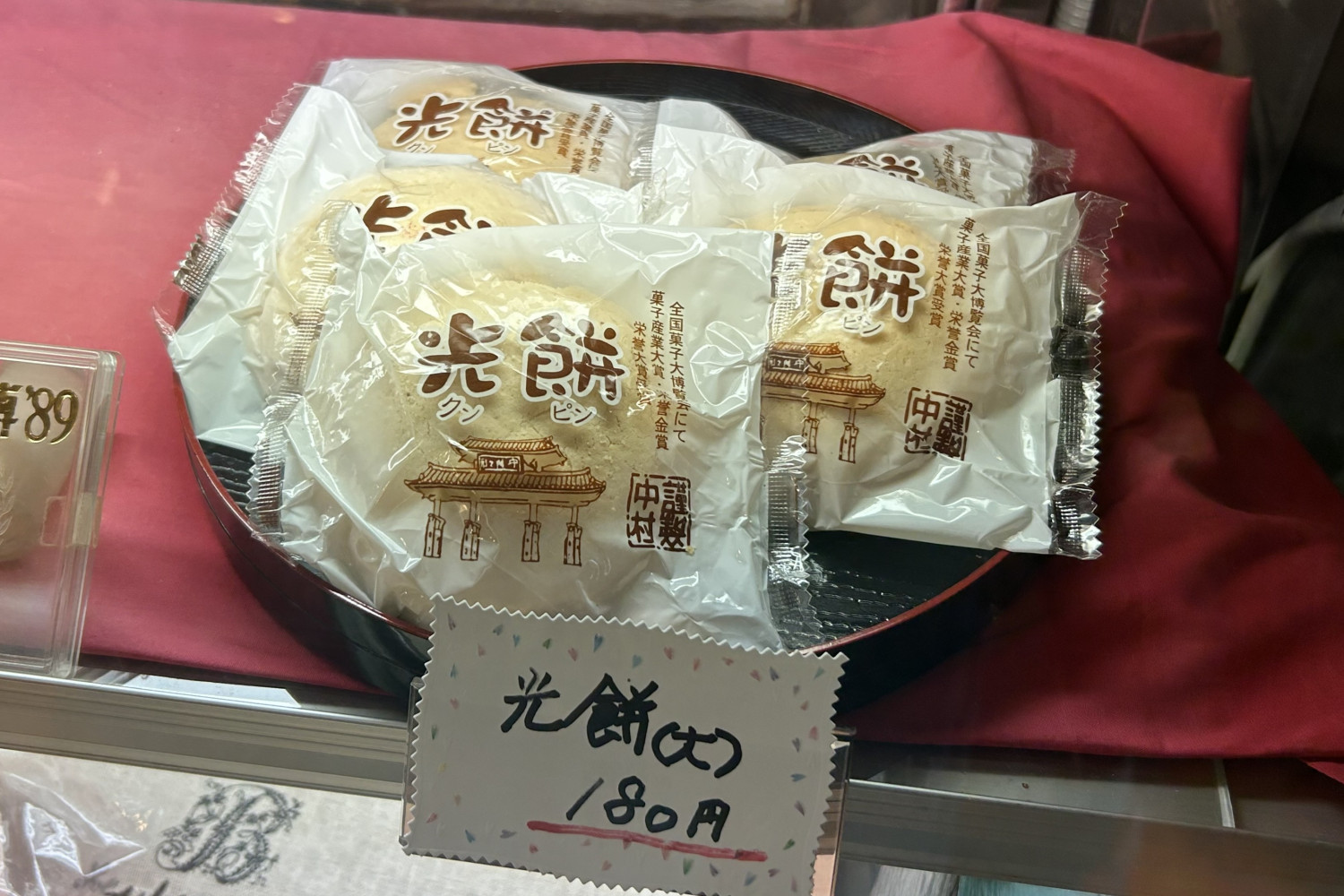 もうひとつの看板商品が、創業当初から販売している「光餅(クンピン)」。琉球王国時代から伝わる伝統菓子で、ほろほろ食感の生地の中にゴマとピーナッツのあんが詰まっています。香ばしく上品な甘さに、心までほどける味わいです。