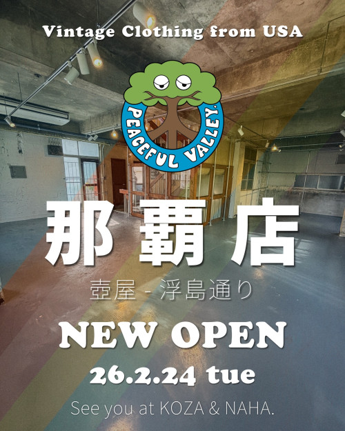 2月24日に那覇市・浮島通りエリアにオープンした、アメリカ古着を中心にセレクトしたヴィンテージショップ「PEACEFUL VALLEY. NAHA」。