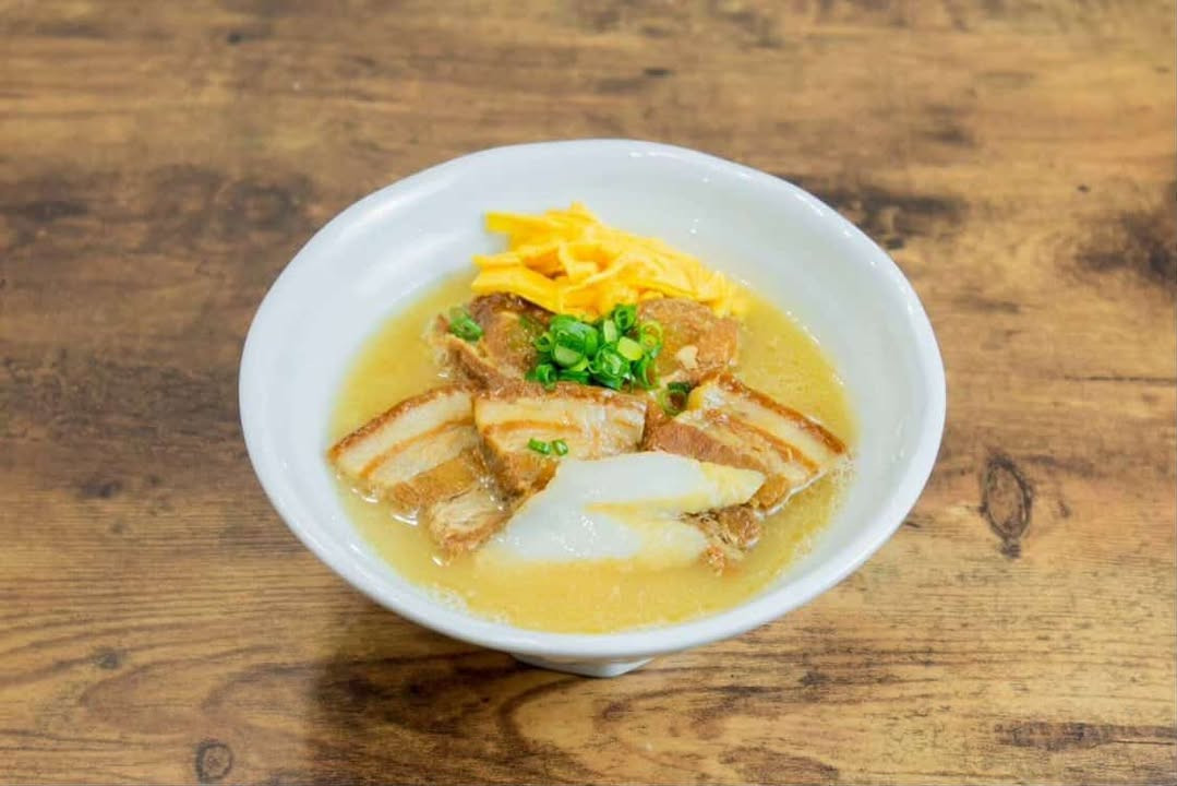 一番人気の「東江そば」は、三枚肉や本ソーキ、軟骨ソーキを贅沢にのせた食べ応えのある一杯です。