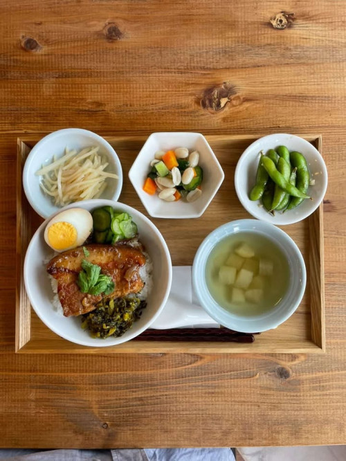 皮付きの三枚肉を台湾のスパイスや調味料で煮込んだ「コンローハン定食」やしっとり茹で上げた鶏むね肉を手で裂き、甘辛だれをたっぷりかけた「ヂ―ローハン定食」といった台湾料理が楽しめます。
