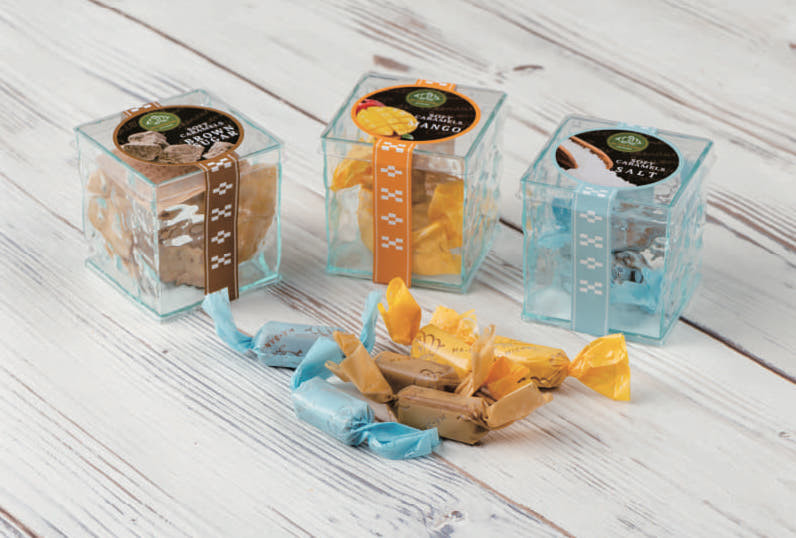 秘伝のレシピで作り上げられた生キャラメルは、口に入れた瞬間にとろけるやさしい口当たりが特徴。お土産としても人気で、プレーン・黒糖・マンゴー・塩・ココナッツと沖縄ならではのフレーバーが豊富なので食べ比べもおすすめです。