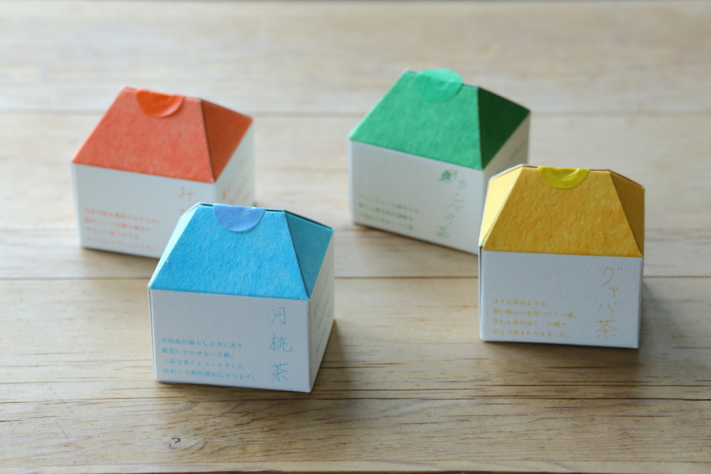 石垣島のおばあが庭のハーブを手摘みした「島ハーブティ」はカラフルな屋根の小さなお家がパッケージ。お茶を淹れていると、ふんわりとハーブの香りが漂って、島ののんびりとした光景が浮かびます。