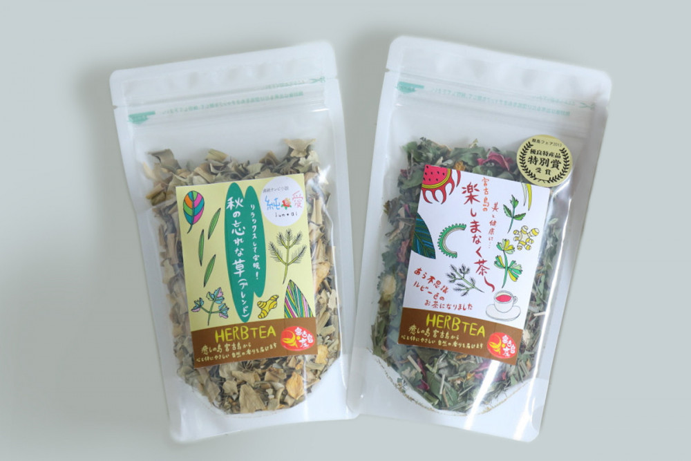 長命草やウコン、ドラゴンフルーツなど、沖縄の素材をブレンドした宮古島のハーブティ。色使いのにぎやかなイラストがかわいらしくお土産にもぴったりです。