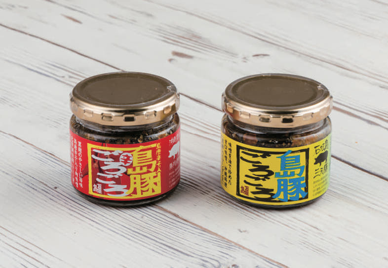 沖縄の家庭の味として県民に愛されている油味噌を、石垣島の三元豚を使って贅沢に仕上げました。黒糖の上品な甘さと醤油の香ばしさも相まって、食欲をそそると根強い人気を誇ります。プレーンとピリ辛、カレーの3種類で展開。