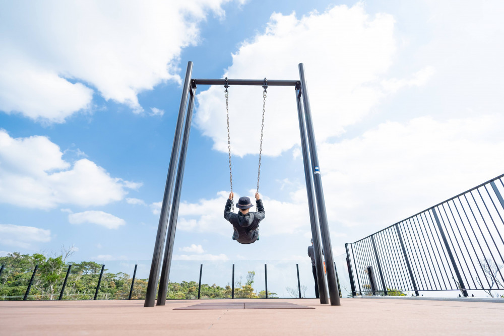 この場所を訪れたらまず体験してほしいのが、森に迫り出すように設置されたデッキにあるブランコです。目の前に雄大な森が広がっているので、ブランコを漕ぐと視界に入るのは森と大きな空だけ。その気持ちよさはここでしか味わえません。ブランコだけでなく、休憩スペースで、ただぼ~っと森を眺めているだけでも穏やかな気持ちになれるほど、その癒し効果は抜群なんです。森から聞こえてくる鳥のさえずりや、季節によって変わる森の様子など、やんばるの森を全身で感じることができるスポットとなっています。