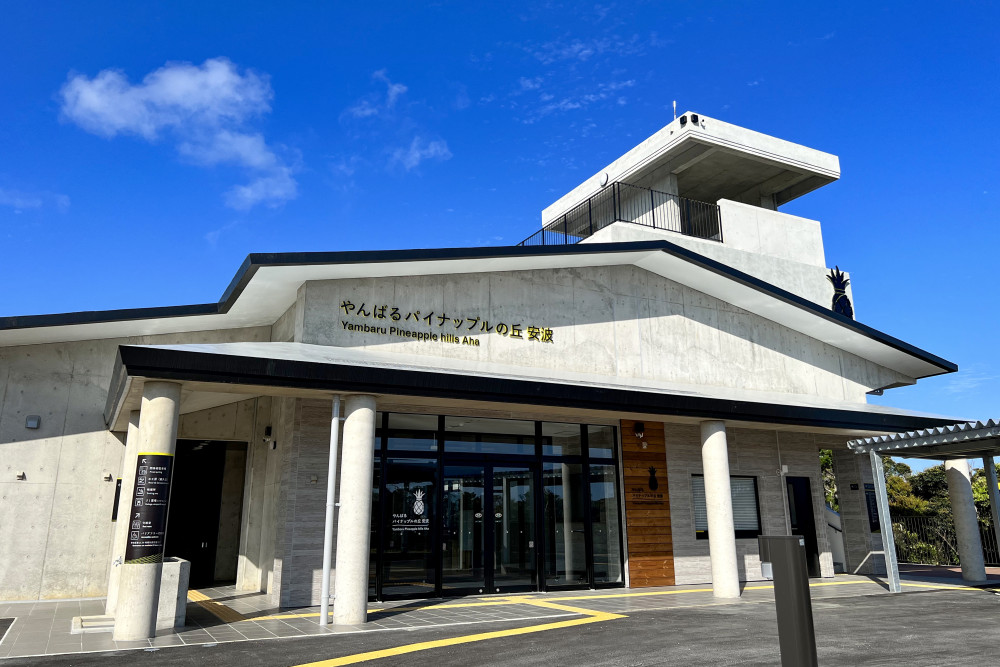「やんばるパイナップルの丘 安波」があるのは、沖縄本島北部エリアの”やんばる”と呼ばれる地域にある国頭村安波地区。モコモコとした形が特徴の”イタジイ”などの木々が生い茂る森にぐるりと囲まれた自然豊かな地域です。見渡す限り森、というロケーションにあるこのスポットのコンセプトは“みちの駅”。「道の駅」ではあるけれど、訪れる人たちの知識や知恵、好奇心などとともに未来に向けて発展してくことを目指していることから、さまざまな「み(未来)」や「ち(知識・知恵)」が集まる場所として、平仮名の“みち”としたとのこと。