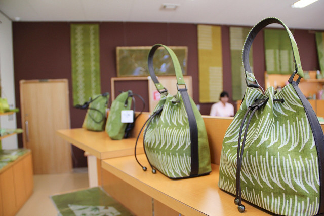 豊見城市の特産品の一つに"ウージ染め"があります。”ウージ”とは、沖縄の方言でさとうきびのこと。ウージ染めはさとうきびの葉と穂を煮出して作った染料で糸や布を染めたもので、爽やかな緑色や、黄色、ピンクなどのやわらかな色合いが特徴です。道の駅の敷地内にある「てぃぐま館」では、ウージ染めのバッグや雑貨などが販売されているほか、実際に作業をしているところ見学したり、体験をすることも可能!また、ウージ染め以外の手作りされた工芸品も数多く展示販売されているので、おみやげ選びの場としてもおすすめです。