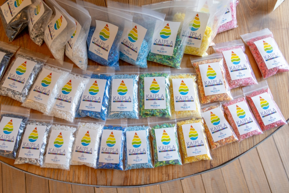 海岸に漂着したプラスチックのゴミを拾い集めて、洗浄・色分け・粉砕したものがアクセサリーの主役です。