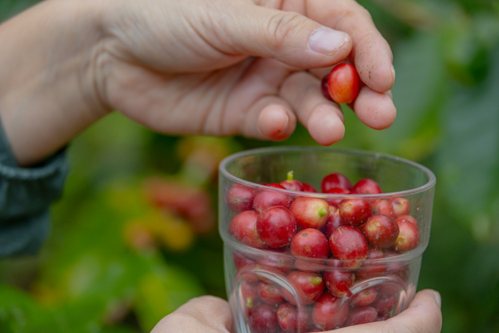 摘んだコーヒーを食べてみると、コーヒーチェリーと呼ばれる果皮はとても甘く、飲むコーヒーからは連想できないフルーティさです。中のタネがこのあとコーヒーとして生まれ変わります。