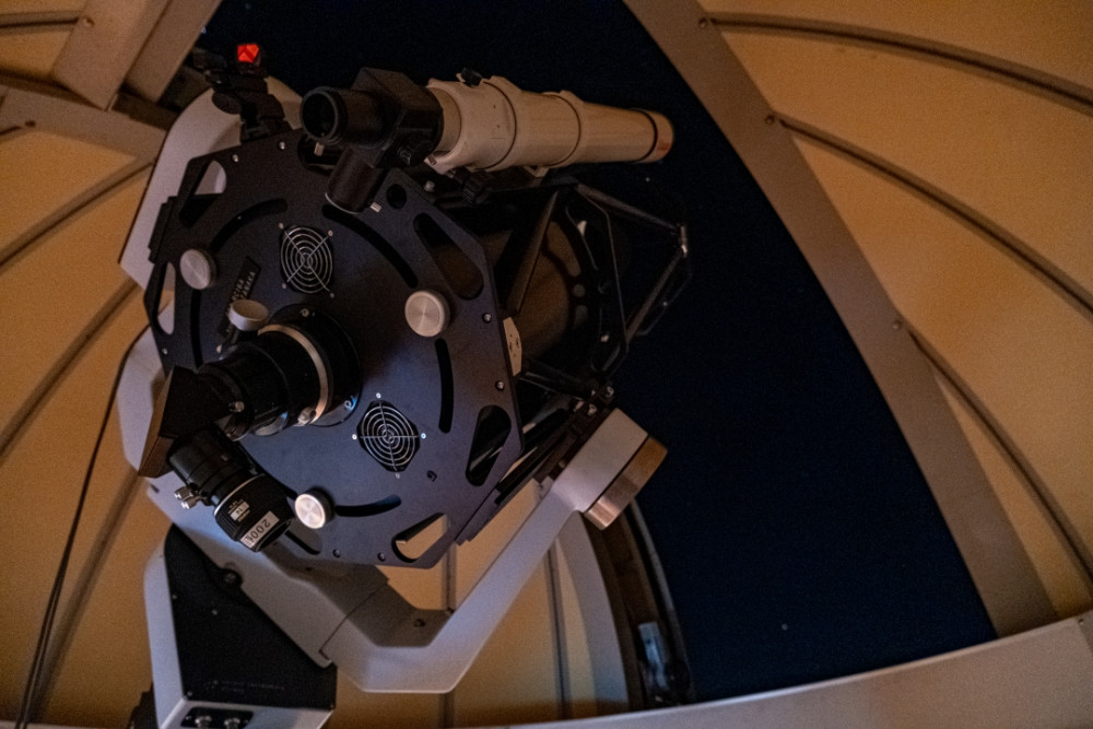 コンピューターで制御された望遠鏡をのぞき込むと、光るつぶつぶだった星の本当の姿を見ることができます。