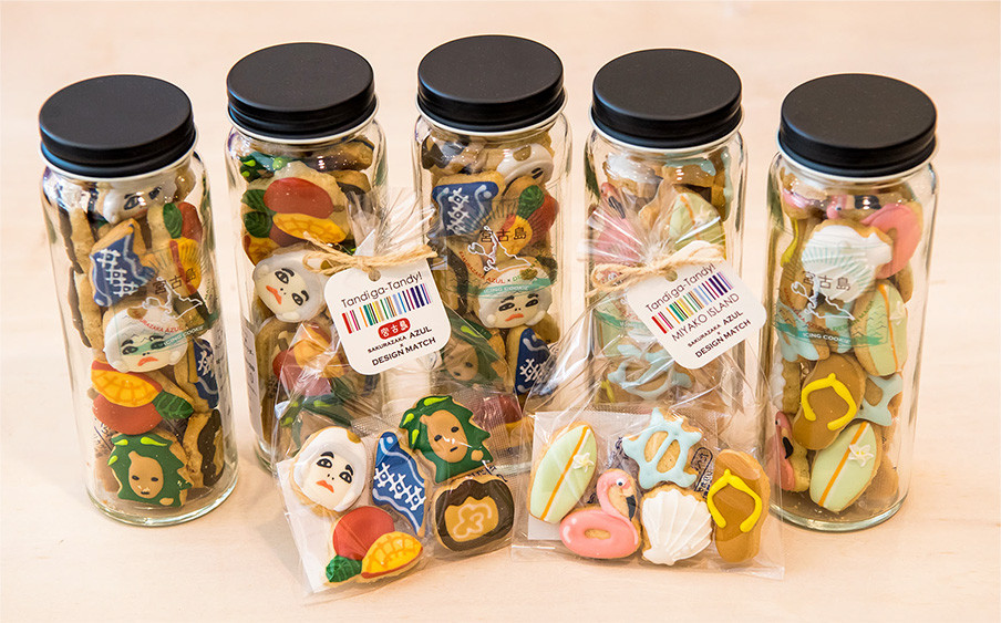 デザインやサイズの種類が豊富なTシャツやキュートなオリジナル手ぬぐい、宮古島まもるくんやパーントゥ(厄払いの来訪神)をかたどったご当地アイシングクッキーなど“ありそうでなかった”宮古島みやげのショップです。出生率が高い宮古島ならではのオリジナルベビーグッズや家庭円満を意味する「家庭和合(きないわごう)」ステッカーなどオーナーの宮古島愛がつまっています。