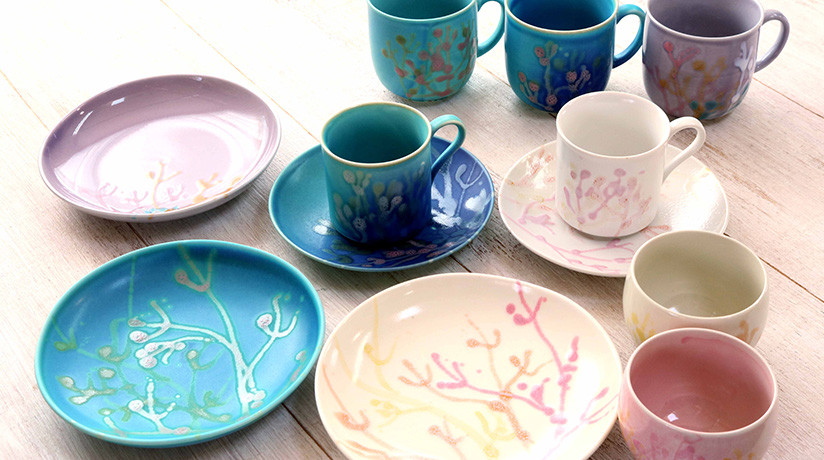 どっしりとした形と力強い絵付けが特徴のやちむんの中でも、個性的な柔らかさが目を引く沖縄南の島陶芸工房の作品。オリジナルブランド「datta」の珊瑚シリーズは、美しいターコーイズブルーの海の中で、やさしくゆらめく珊瑚を表現しています。一つひとつ丁寧に作り上げられた作品の数々はどれもが唯一無二の存在。実際に手に取れば運命の出会いが見つかること間違いなし。食器類の他にも小物やアクセサリー、シーサーや表札もおすすめです。