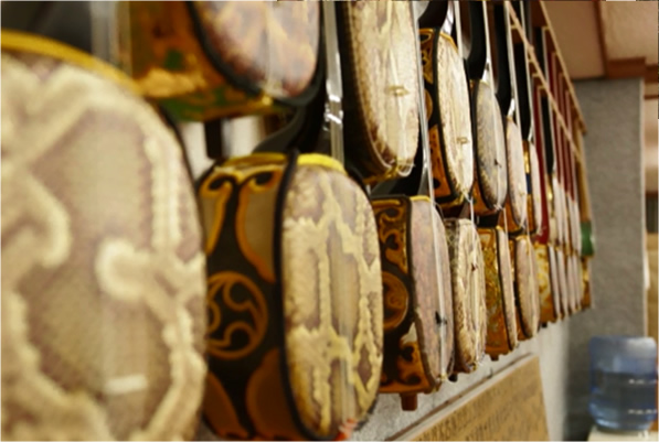 14世紀頃より琉球音楽の主要楽器となったとされる三線。