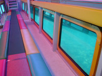 大型水中観賞船オルカは那覇港から周辺海域のコースを遊覧します。大型特殊ガラス製の窓を32枚設置し、楽な姿勢で海底散歩がお楽しみいただけます。