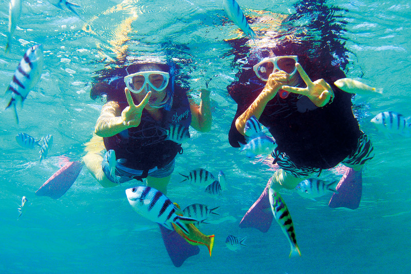 ザ・ムーンビーチミュージアムリゾートでは、ジェットスキーやウィンドサーフィン、ウェイクボード、お子様マリンスポーツ教室など充実のマリンメニューがラインナップされています。中でも無人島ヨウ島(じま)へのクルージングやバーベキュー、シュノーケリングなどを楽しむツアーが人気。色とりどりの熱帯魚やサンゴが見られるポイントでのシュノーケリングや島を探検するエコツアーなど多彩なコースが用意されています。