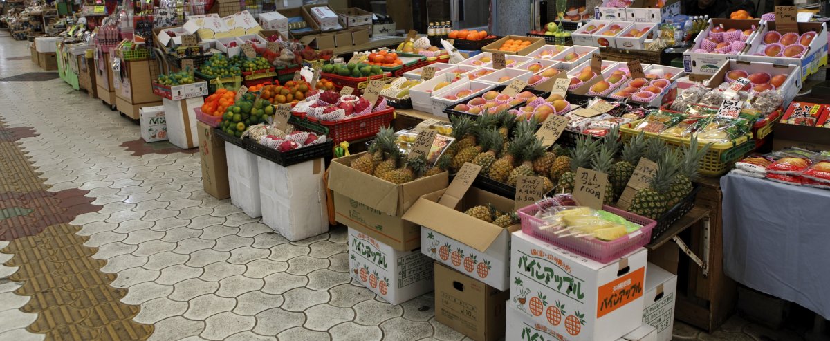 国際通りからほど近い、沖縄のあらゆる食材が所狭しと並べられている公設市場。