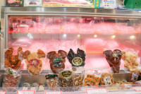 色鮮やかな熱帯の魚介類、塊のまま豪快に売られている豚肉、素朴な島野菜など、沖縄の食文化がひと目でわかるスポットです。