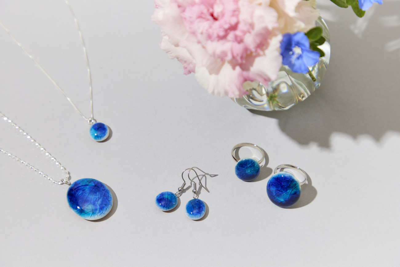 また、石垣焼のハッピーブルーアクセサリーは、青いものを身につけると幸せになれるというヨーロッパの言い伝えに因んだものです。