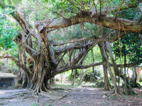 周囲7kmの起伏に富んだ島。浜と比嘉の2つの集落があり、赤瓦屋根の家並みや石垣といった昔ながらのたたずまいを残すなか、半農半漁の生活が営まれています。1997年、平安座(へんざ)島との間に、県内では3番目の長さの浜比嘉大橋が開通し、本島からより多くの人が車で足を運ぶようになりました。琉球開びゃくの神・アマミキヨが住んでいたと伝えられる島で、集落には拝所や御嶽(ウタキ)が点在しています。