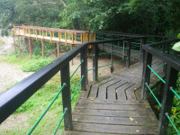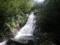 沖縄本島北部はヤンバル(山原)と呼ばれ、固有種や絶滅危惧種などの動植物が生息する貴重な森があります。比地大滝は、そのヤンバルの森を流れる比地川のほぼ中間にあり、県内で最も大きな滝です。滝壺までの遊歩道をたどれば、片道1.5kmの森の散策を気軽に楽しむことができます。滝の周辺には学術的に貴重な380種もの植物が生い茂り、珍しい鳥や、カメ、エビ、カニ、ハゼといった生きものたちに出会えます。
