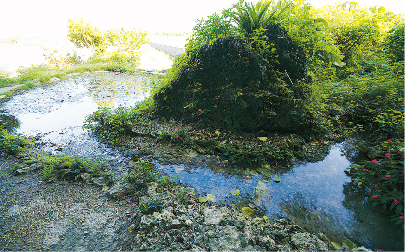 南城市玉城字百名(なんじょうし・たまぐすく・あざひゃくな)の海岸近くにある二つの泉で、西側を受水、東側を走水といいます。下流に御穂田(ミフーダ)と親田(ウェーダ)とよばれる田んぼがあり、琉球における稲作発祥の地と伝えられています。旧暦一月の最初の丑の日には、南城市玉城字仲村渠(なんじょうし・たまぐすく・あざなかんだかり)区の人たちによる、親田御願(ウェーダヌウガン)と呼ばれる田植えの儀式が行われ、儀式は市の無形民俗文化財に指定されています。首里城の東方にある霊地を巡拝する、東御廻り(アガリウマーイ)の行事で訪れる拝所の一つです。