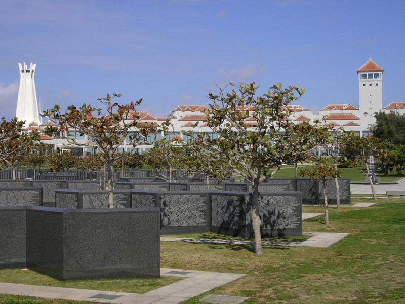 沖縄戦の最後の激戦地、摩文仁(まぶに)の平和祈念公園内に、太平洋戦争・沖縄戦終結50周年を記念して建設されました。波のうねりのように建てられている「平和の礎」には、軍人や民間人、そして、国籍の区別なく、沖縄戦で亡くなられたすべての人々の氏名が刻まれています。戦没者の追悼の意を表し、御霊を慰めるとともに、世界の恒久平和を願い、沖縄の歴史と風土の中で培われた「平和のこころ」を国内外に広く伝えています。