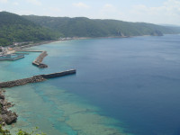 宜名真(ぎなま)集落の旧道を登ったところにある高さ70mの断崖。バンタとは方言で崖のこと。高い断崖が切り立ち、束ねた茅を投げこむと、強風で吹き上げられバラバラに飛び散ったことからこの名がついたといいます。断崖からのぞきこむ海は、ひきこまれそうに深い青。この地はかつては交通の難所といわれていましたが、辺戸岬(へどみさき)に通じるトンネルが開通し、東海岸との交通が便利になりました。