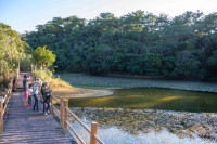 国頭連山や羽地(はねじ)内海が一望できる景勝地。イタジイの木々に囲まれた森の中に、バンガローや樹上ハウスやキャンプ場、多目的広場に憩いの広場、3kmの林間遊歩道などがあり、野鳥のさえずりや四季折々の植物を楽しむことができます。園内にはおもちゃ美術館や大きな湖もあります。