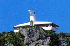 伊良部島(いらぶじま)で最も高い場所にあるのが、町のシンボル「サシバ」が羽を広げて飛んでいる姿を模した牧山展望台です。ここからは東側に宮古本島、来間島(くりまじま)、池間島が見渡せ、美しい海や真っ青な空が一面に広がっています。また展望台のふもとには遊歩道があり、亜熱帯原生林が生い茂る自然の中を散策したり、林森林浴を楽しむこともできます。
