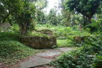 構造的には石造で、亀甲墓の初期の典型として、墓正面に「眉」と呼ぶ部分が後期のそれに比べて低いのが特徴です。内部はマチと呼ばれるアーチ式の石組みになっているそうで、ヒンプンはないものの、近代の亀甲墓の要素をすべて備えています。