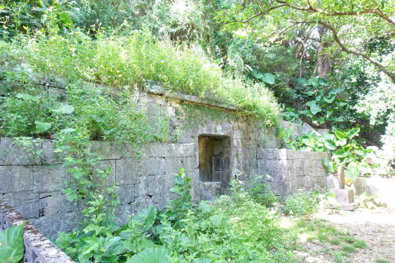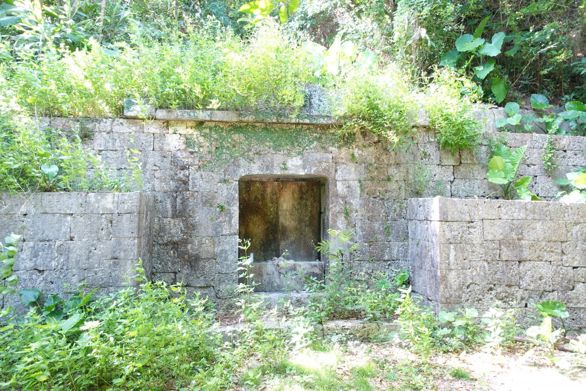 墓は山の中腹の砂岩層を掘って造られています。壁は琉球石灰岩の切石で積み、ニービヌフニ(微粒砂岩)の屋根は平葺き型の天井板の上に土を盛って亀甲型を造り、漆喰で仕上げてあります。