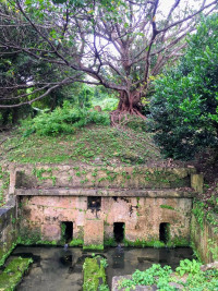 集落から井泉まで、25mもの高低差がある曲がりくねった坂道を100m程下ったところにある喜友名集落の共同井戸として利用されてきた石造の井戸です。