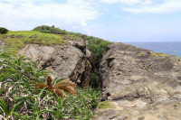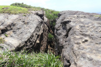 与那国島(よなぐにじま)久部良港の東側高台にある岩礁の裂け目。バリは割れ目のことで、割れ目の幅は約3m、深さ約7m。一帯は海岸近くの景勝地ですが、王府時代に、頭割りで税金を取り立てる人頭税(にんとうぜい)に苦しめられた島人たちが、人口増加を防ぐため妊婦にこの断崖を飛び越えせさせたという伝承があります。転落したり、たとえ飛び越えられても流産という過酷な試練でした。人頭税が廃止されたのは明治36年で、20世紀に入ってからのことです。県指定名勝。