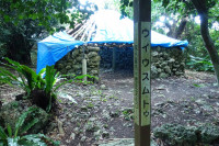 上比屋山遺跡は砂川集落の南、高さ40m琉球石灰岩の丘陵地上に形成された14~15世紀頃の広大な集落遺跡で、内部には数カ所の拝所があります。