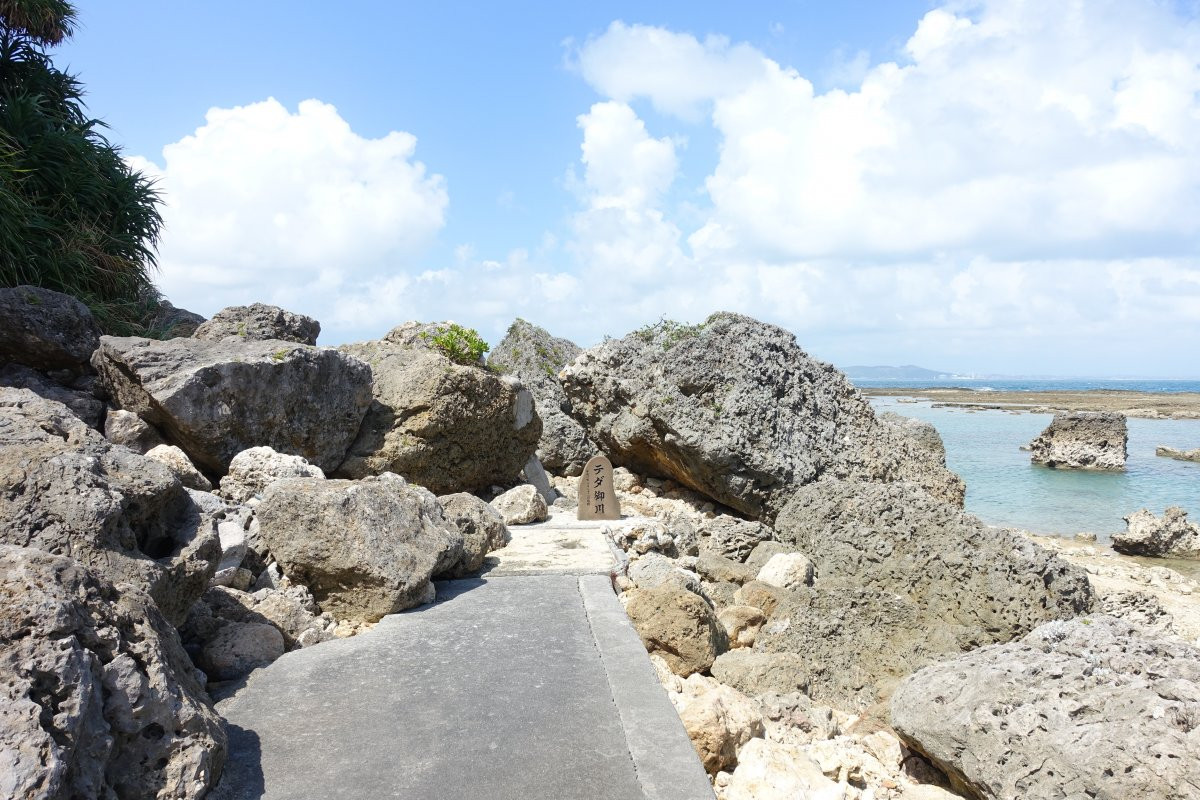 テダ御川は、南城市知念知名崎(なんじょうし・ちねん・ちなざき)の海岸にある泉で、太陽神が降臨した聖地とされています。