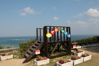 南城市観光施設のがんじゅう駅・南城の裏庭にある小さな橋。
