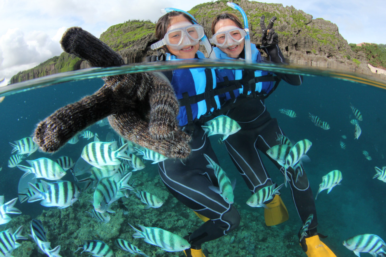 沖縄本島でも人気№1の真栄田岬がメイン熱帯魚の種類・数・地形どれをとっても超一流です。