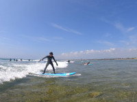 サーフポイントへの入り方や基本ルールなどを確認後、海へ入り基本テクニックや波乗りのコツを学びます。 -