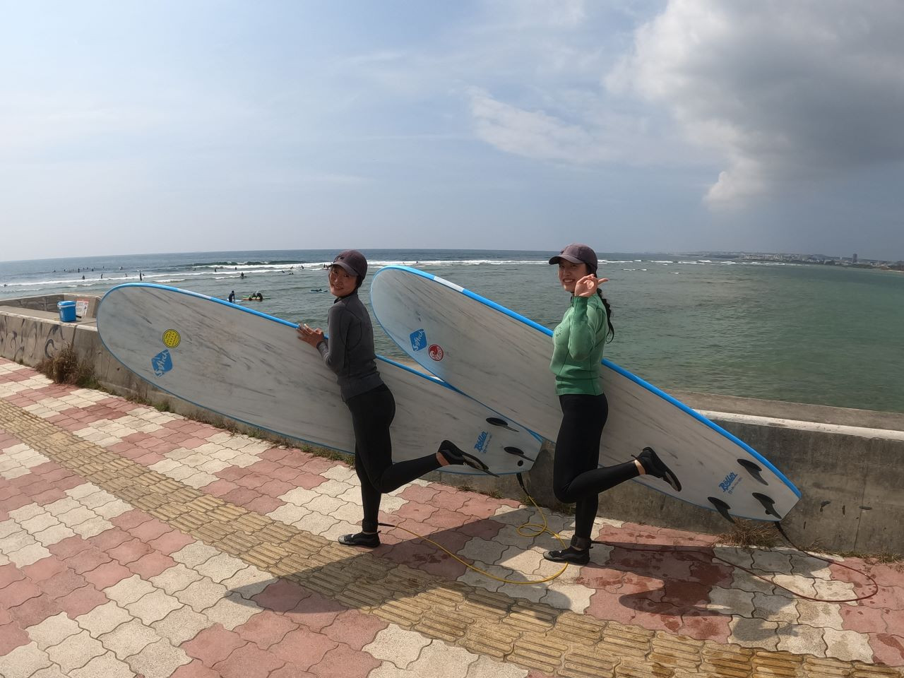 ポイントへの入り方や基本ルールなどを確認後、海へ入り基本テクニックや波乗りのコツを学びます。 -