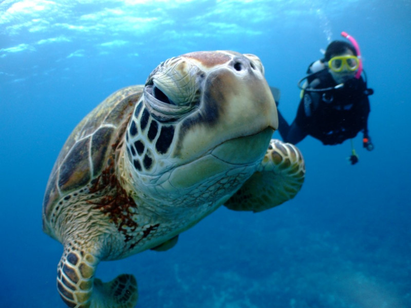 たくさんのカラフルな魚が覗けるのはもちろん、時にはカメにも遭遇することも。