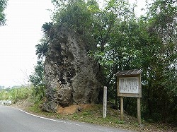 琉球王朝時代に国頭方西街道を歩いている旅人を狙いこの岩の上にひそんで長いさおの先に鉤をつけて、岩の間の道を通る旅人の頭に載せた荷をひったくったといわれる岩。