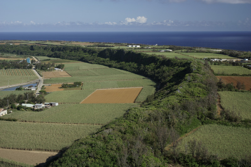 環礁が隆起してできた北大東島(きただいとうじま)は、その名残りとして、島の内陸部を環状に取り囲む隆起珊瑚礁地帯が見られます。その一帯は「長幕(ながまく)」と呼ばれ、