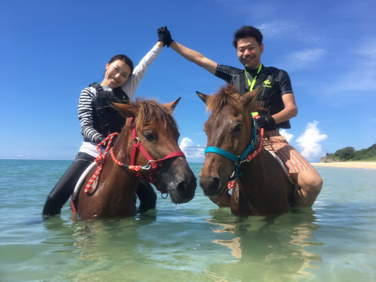 沖縄といえば海! 初心者だってビーチで馬に乗ってみたい!というご要望にお応えします。まったく馬に乗ったことがなくても大丈夫。専門インストラクターがしっかりサポートします。基本操作を覚えたら、いざ一人旅へ。広々としたビーチでの乗馬は開放感あふれるステキな体験です。