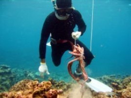 タコ・ウニ・サザエ・シャコ貝などを素潜りでとったり、モリ突きや追込み漁で「とったどー」が体験出来ちゃいます。