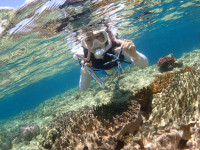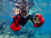 シュノーケル(素潜り)で貝をとったどー出来るコースです。