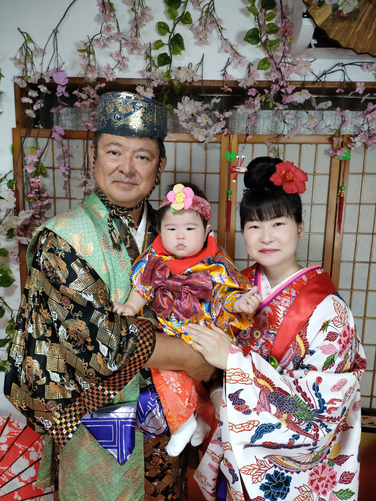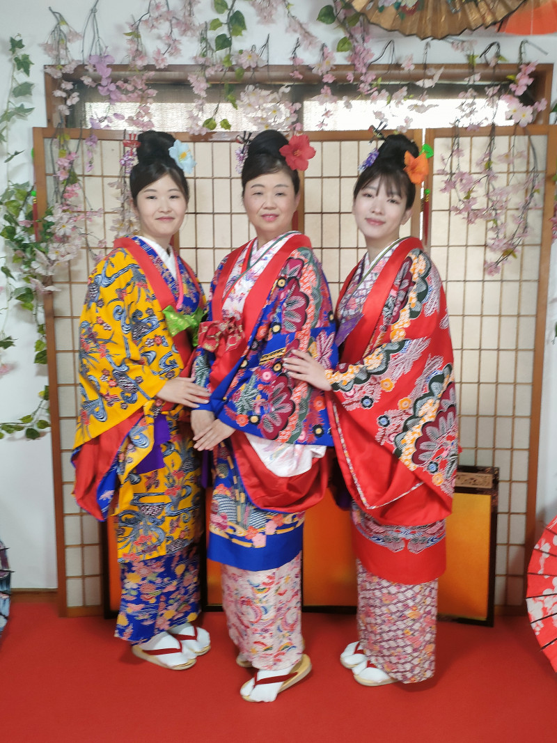皆様を沖縄の民族衣装(琉装)で 素敵に綺麗に・美しく・可愛く変身致します。スタッフと楽しく会話をしながら着付け、ヘアーセットのあとに撮影です。