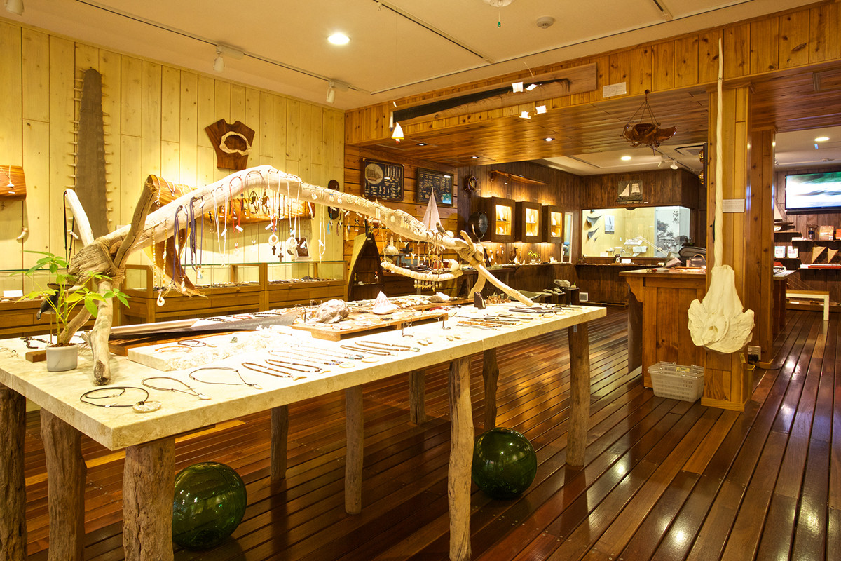 海・サバニをテーマにした2号店は、サバニや帆船の模型などを揃え、マニアにはたまらない空間。また、マッコウクジラのアゴ骨やイッカクの牙なども展示されていて、他では観られない貴重品が豊富です。