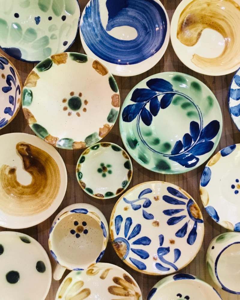 釉薬(器の色)はやちむんの特徴でもある3瑠璃色(紺)、織部(緑)、飴色(茶)を用意。
