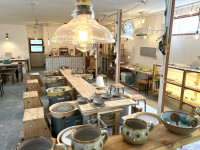 漆喰の白を基調としたリラックス空間でカジュアルに沖縄の伝統的な焼き物「やちむん」作りを体験