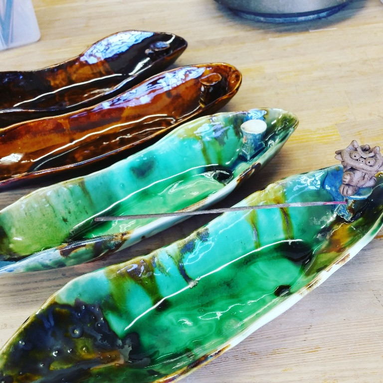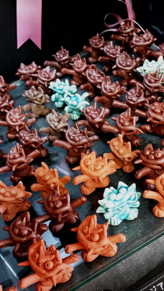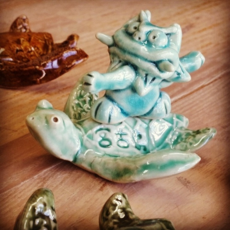 シーサー、食器、花器、置物など作る形は自由です。あらら窯の魅力は焼き上がりの色を10種類以上のサンプルから選べること!宮古島の思い出を形に残しませんか?